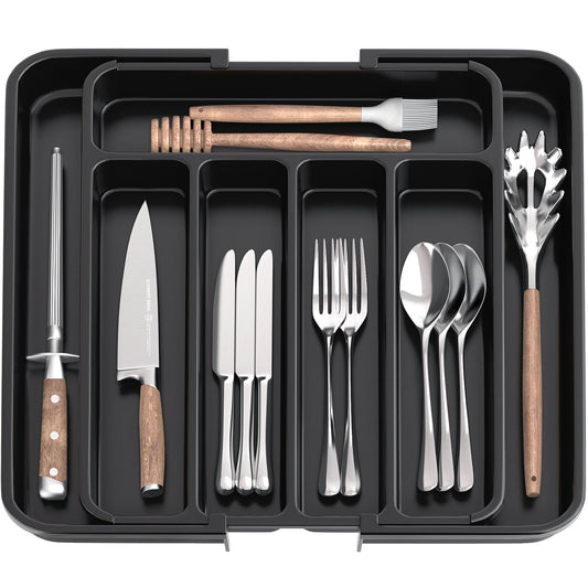 AUJEN Silverware Organizer - Expandable Kitchen Drawer Organizer, Adjustable Utensil Organizer, Cutlery Drawer Organizer for Forks, Knives, Multipurpose Kitchen Organizers and Storage Solution, Black